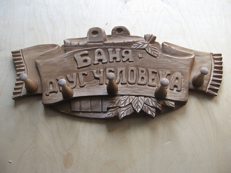 Баня также начинается с вешалки. Наши банные вешалки изготовлены из натуральной древесины и украшены гравировкой. Лаковое покрытие. Крючки тоже деревянные, надежно посажены на клей и два шурупа. Гарантированно выдержат вес самой тяжёлой одежды.