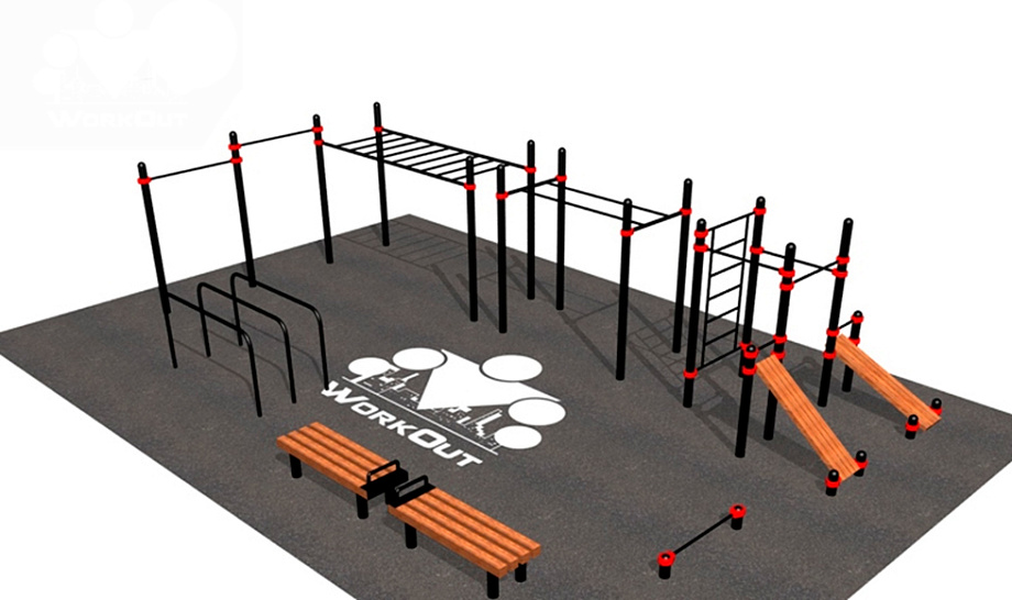 Загрузка...Это спортивный комплекс, включающий в себя две скамьи для пресса с разным наклоном, шведскую стенку, пять разновысоких турников, брусья, брусья гнутые, перекладину для отжимания, рукоход и две скамьи.